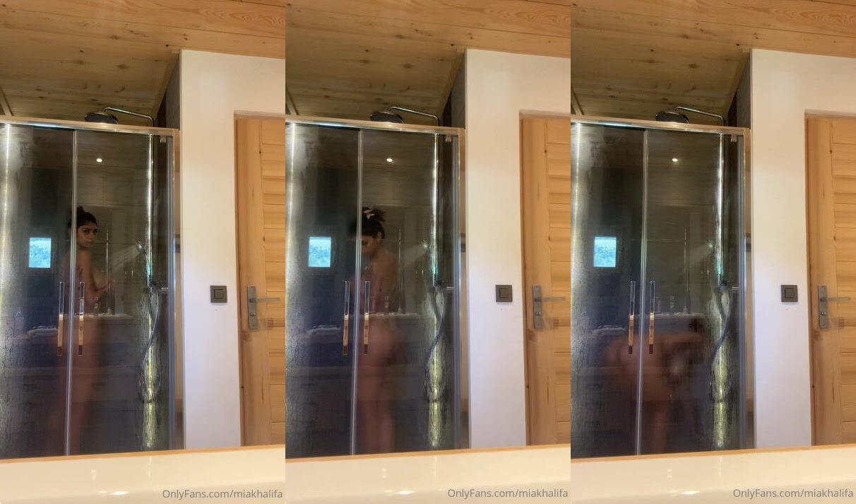 Mia Khalifa standing showering naked