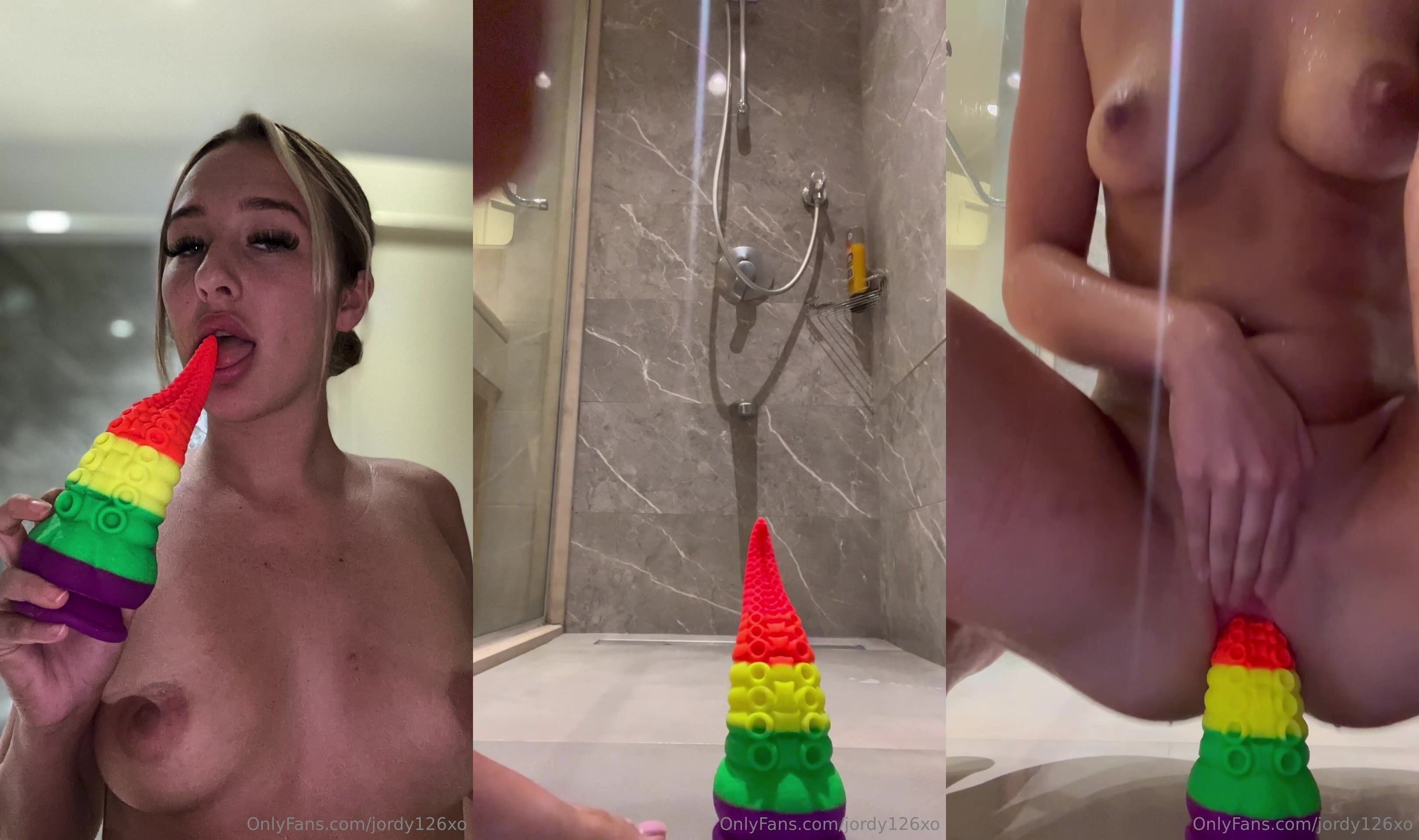 Jordy British uk babe PoV solo dildo in shower