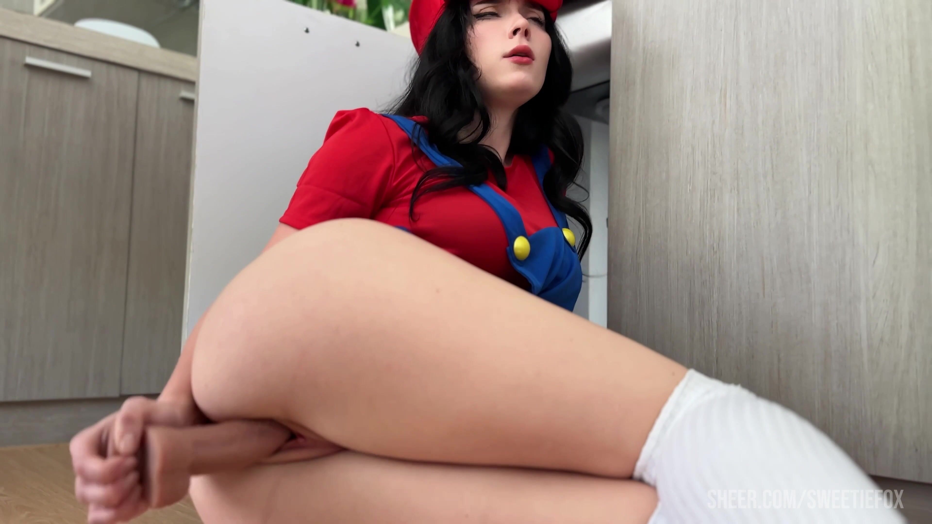 Sweetie Fox - Sexy Mario Riding Big Dildo tol Intense Orgasm, Solo Cosplay