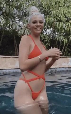 Christina Khalil black and white bikini try-on