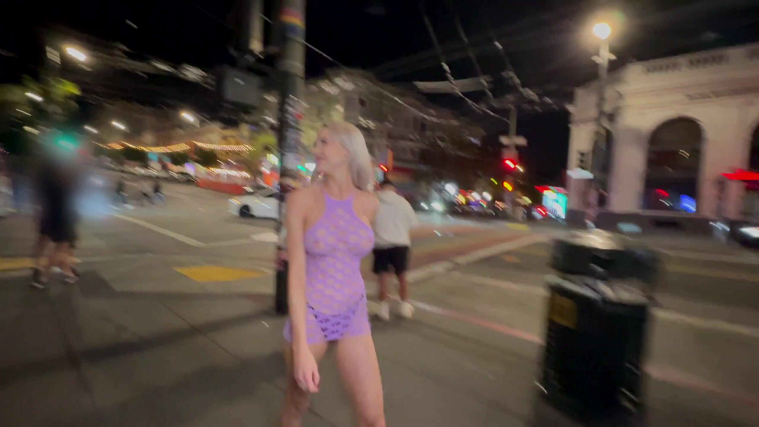 Allie Dawson in her Purple Dress Public Naked Bitchinbubba/ bralessforever