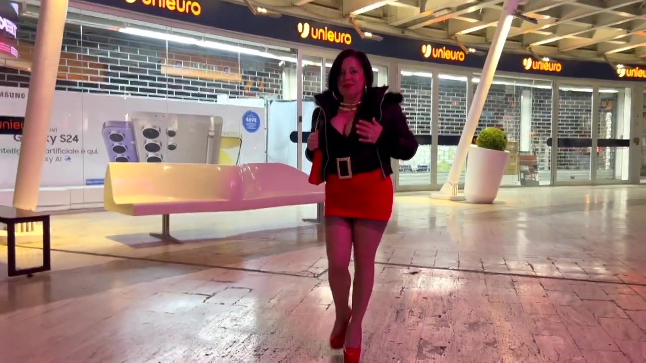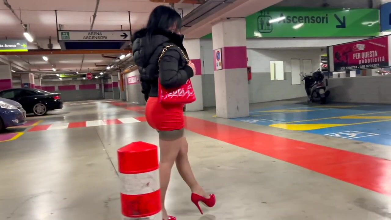 Red heels and nylons in public
