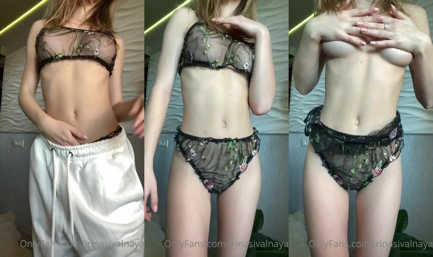 Irina Sivalnaya in transparent lingerie shows her tight holes
