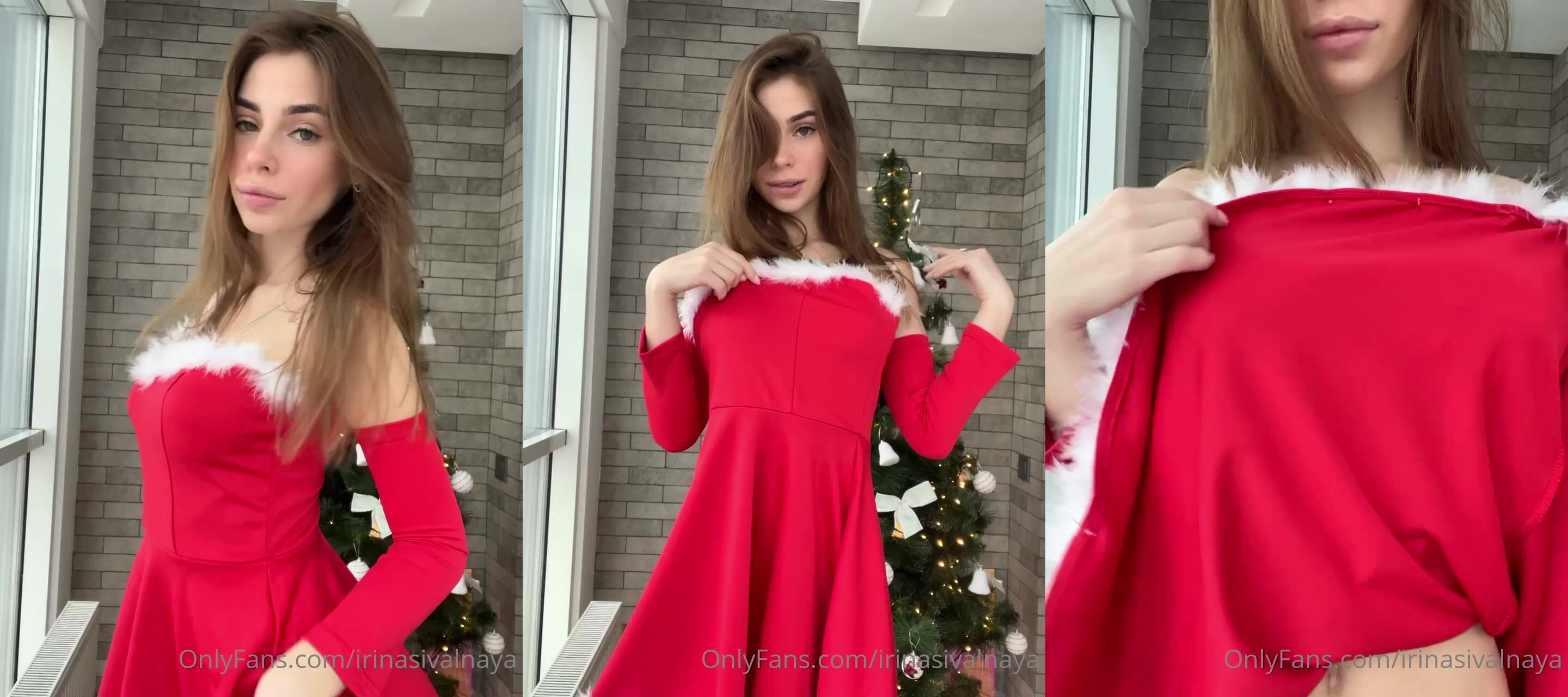 Irina Sivalnaya shows off her charms under the Christmas tree