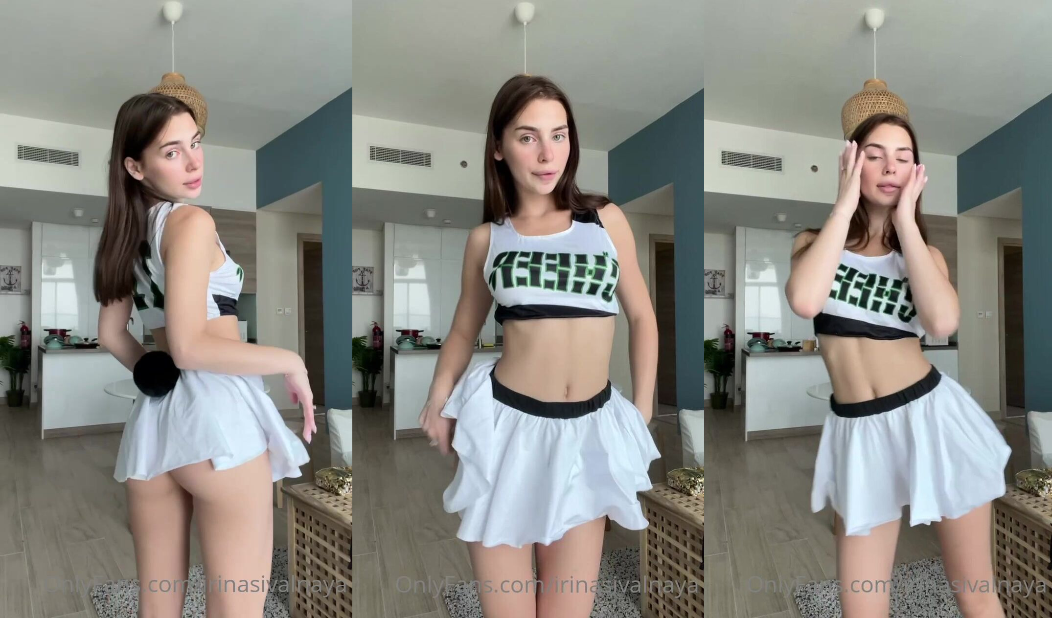 Irina Sivalnaya in white skirt strips & teases